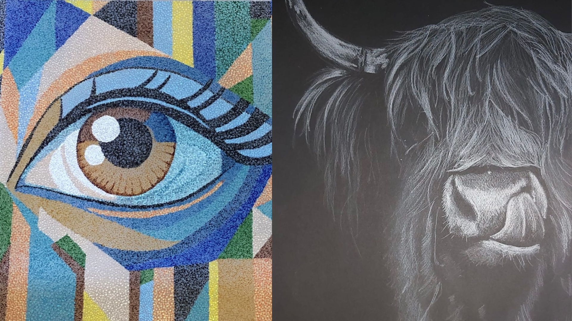 « Le point de départ » d’Ariane ? Une rencontre : en 2024, elle qui n’a jamais dessiné, découvre les dessins de Bernard Breulheid et décide de suivre les cours qu’il prodigue. C’est l’étincelle qui a mis le feu aux poudres de sa créativité. Elle a adopté l’exigeante technique du crayon blanc sur papier noir de son mentor pour réaliser principalement des portraits.
